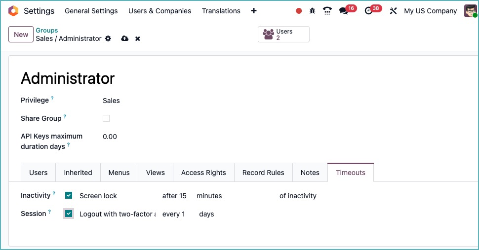 Odoo now ensures that at least one administrator is always present, so you never accidentally find yourself without an administrator.